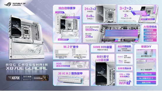 面向4K游戏、4K视频编辑和专业8K/3D渲染需求,ROG CROSSHAIR X870E GLACIAL、ROG CROSSHAIR X870E DARK HERO等硬核主板,拥有旗舰级供电、双有线网口、多M.2接口等配置,搭配AMD Ryzen 9/X3D系列处理器,可充分释放RTX 5080/5090等高端显卡的性能。ProArt X870E-CREATOR WIFI主板更是提供丰富的互联和高规格供电能力,搭配32GB×2 DDR5内存,轻松应对虚幻引擎5开发、高码率4K编辑等重度工作流。